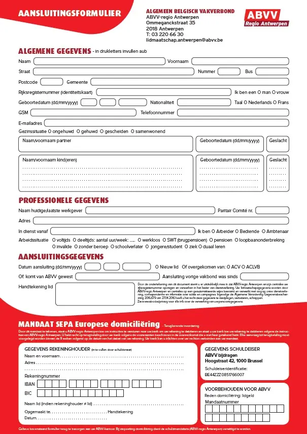 - Vul dit inschrijvingsformulier en de domiciliëringsaanvraag in.